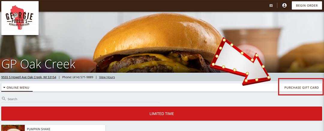 - Online gift cards can be purchased and redeemed on either location’s online ordering system.